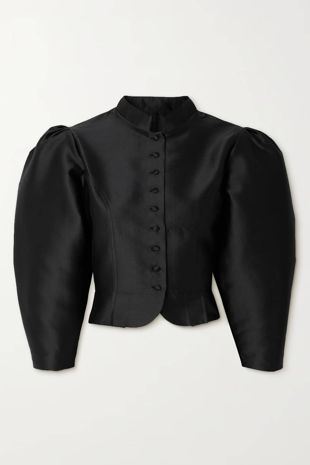 Exquisite Ruched Twill Crop Top & Floral Satin Wide-Leg Pants Set