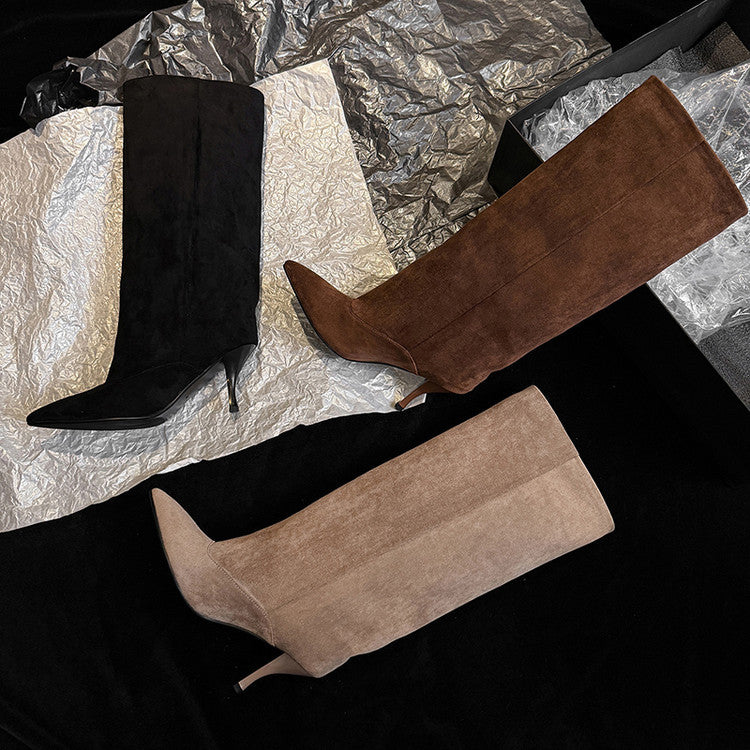 2025 autumn and winter new Spice Girl pointed high-heeled temperament boots women's European and American fashion sleeve sexy stiletto fashion boots
