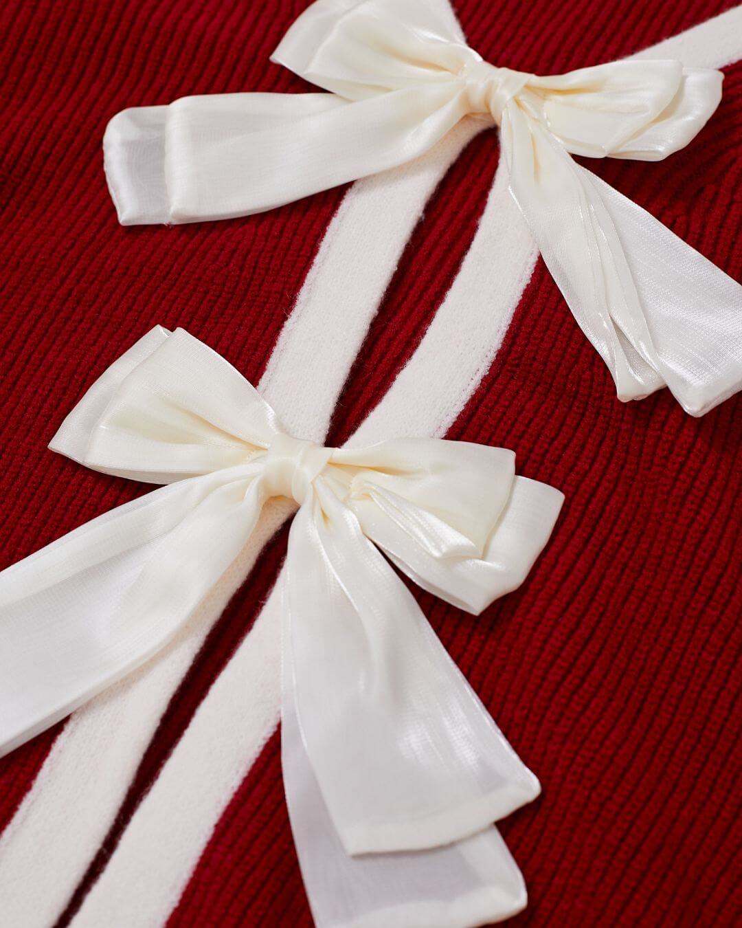 Backless Contrast Knit Top Featuring Bow Tie Detail Set