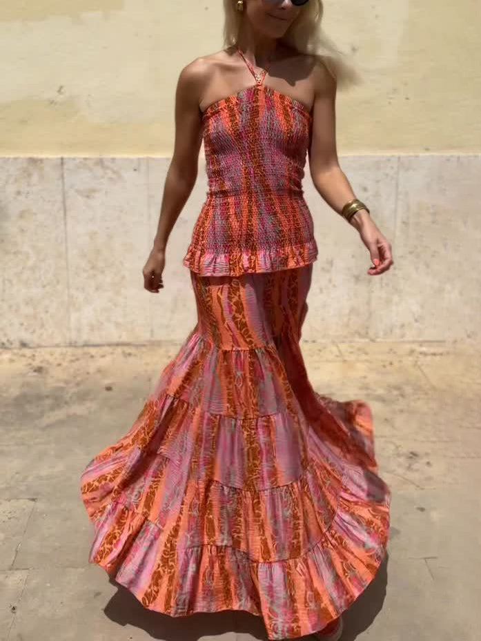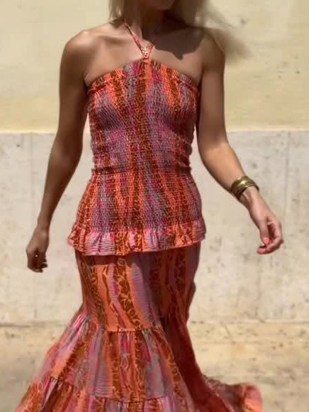 Inject a touch of nostalgic charm into your wardrobe with this casual retro ethnic print tank.
