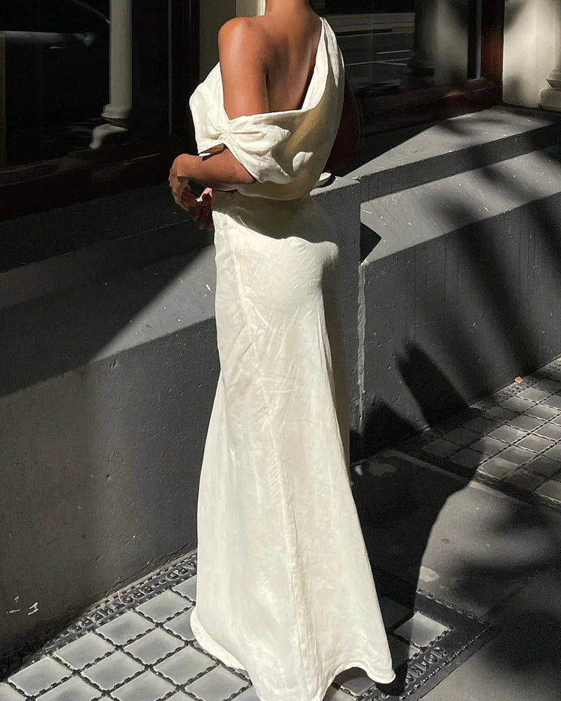 Chic slanted shoulder cotton and linen two-piece set