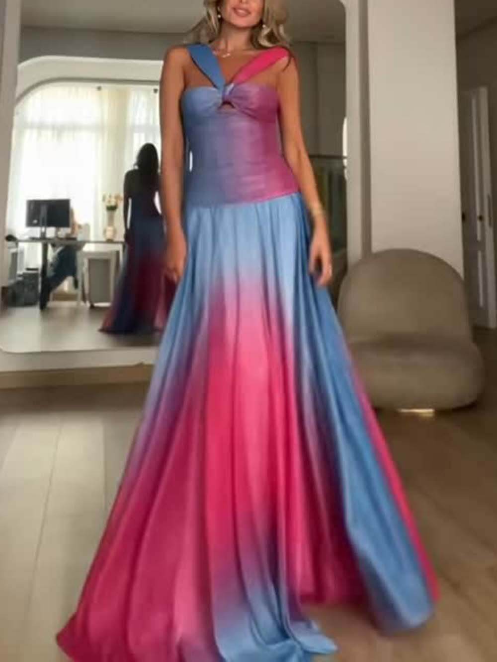 Delicate Ombre Print Twist-Detail Cutout Maxi Dress– Ideal for seaside dinners or sunset parties, this flowing dress features a dreamy ombre print, elegant twist accents, chic cutouts, and trailing ties for a graceful, romantic look.