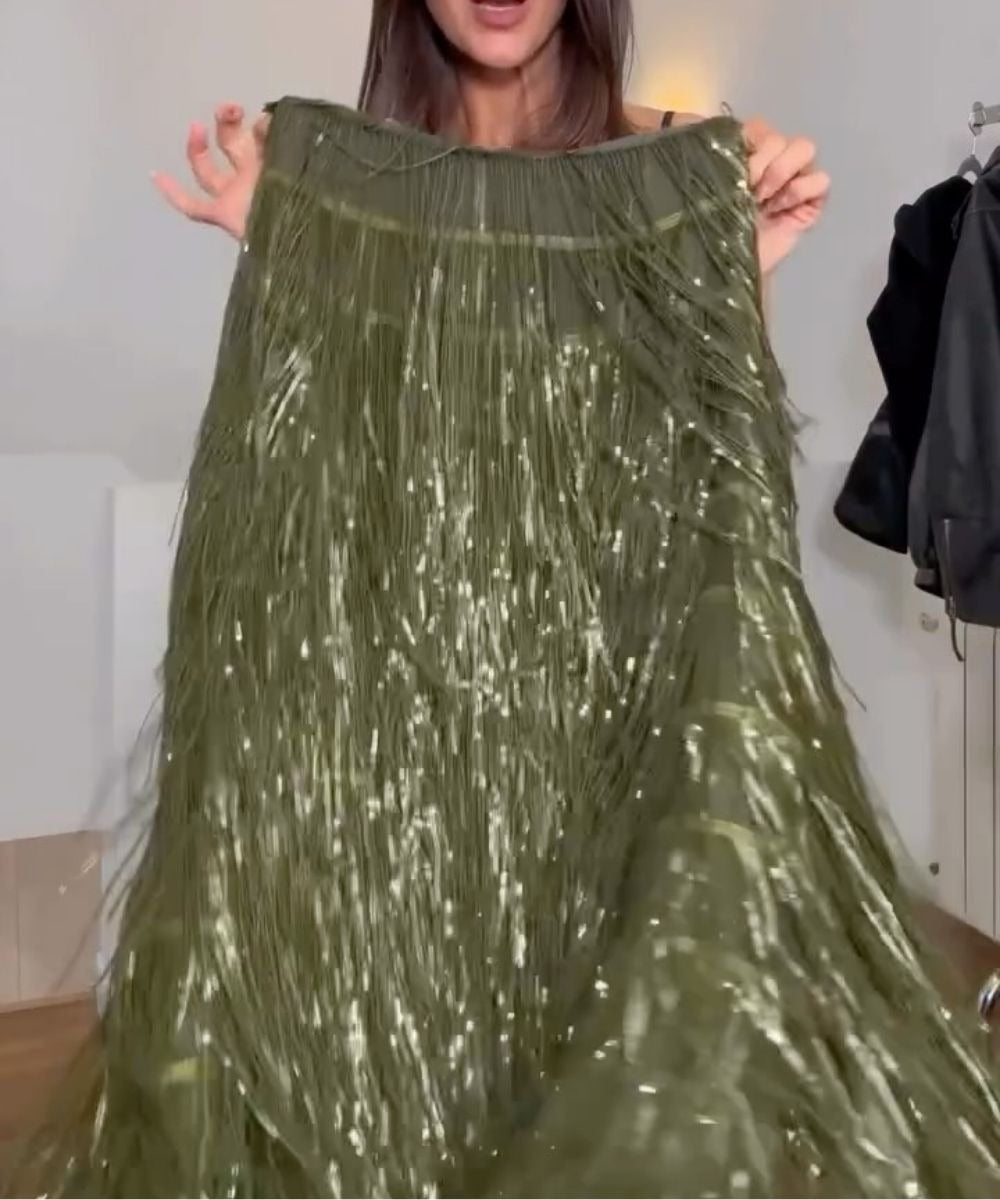 Elegant Sequined Tassel Stylish Midi Skirt
