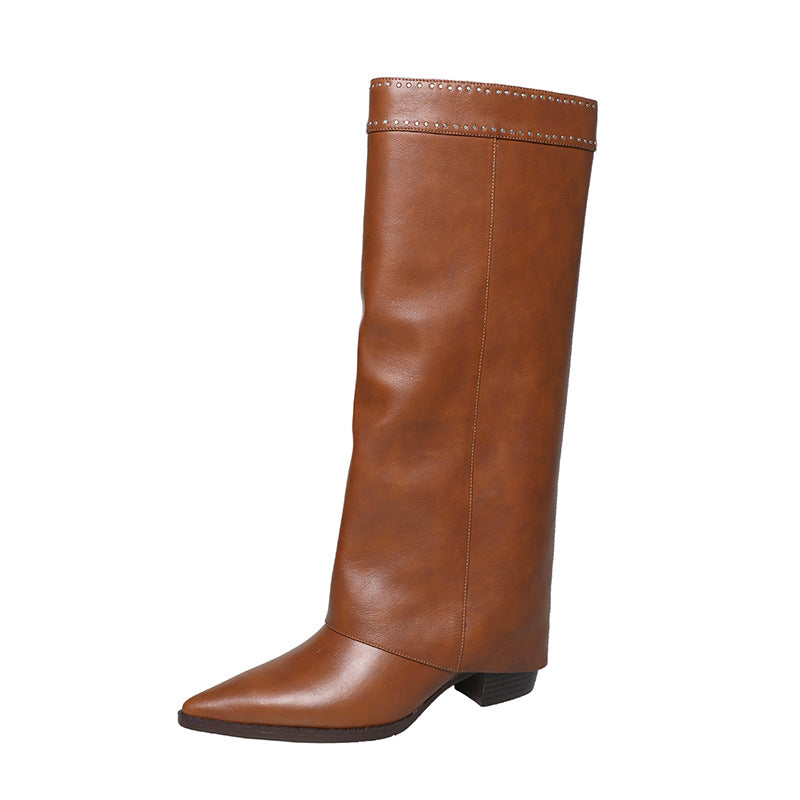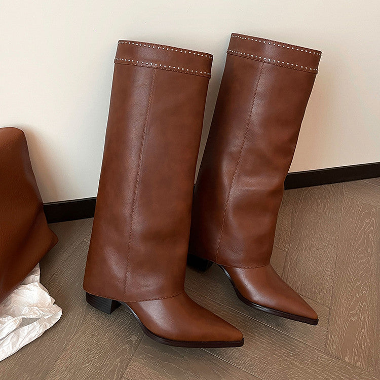 European and American Spice Girls Temperament Coarse Heel Pants Boots Women's Boots 2025 Autumn and Winter New Sexy Pointed Middle Heel High Boots Women's