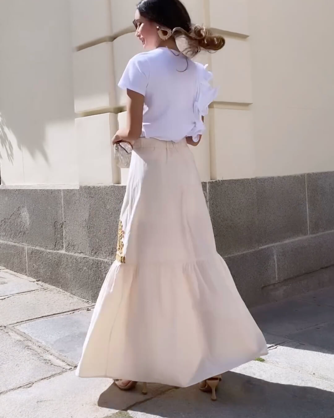 Linen Blend Ethnic Print Patchwork Embroidered Skirt