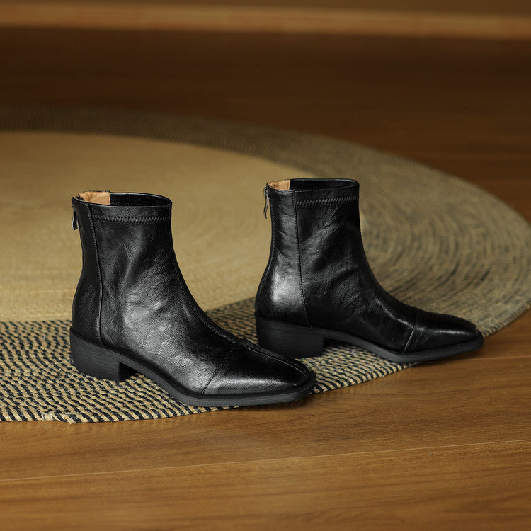 Retro style medium heel commuting comfortable small short boots women's 2025 autumn and winter new square head rear zipper thick heel fashion women's boots