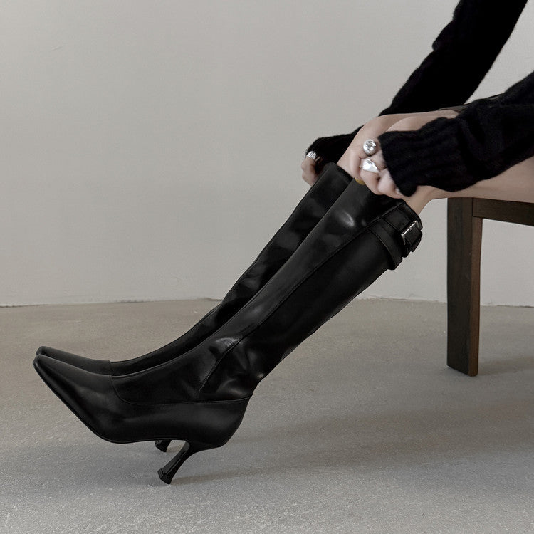 Skinny temperament, thin heels but knee boots for women's 2025 autumn and winter new elegant square head side zipper high heel fashion boots