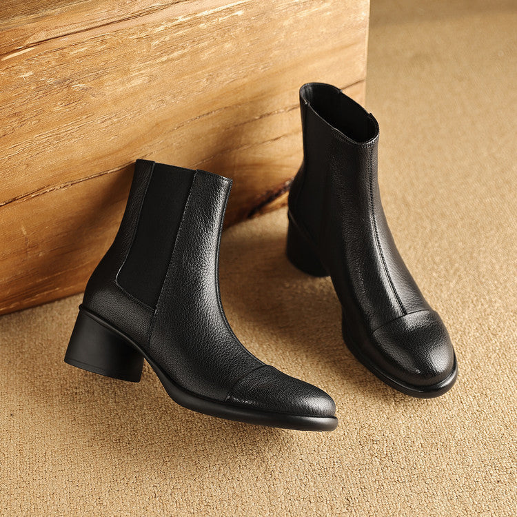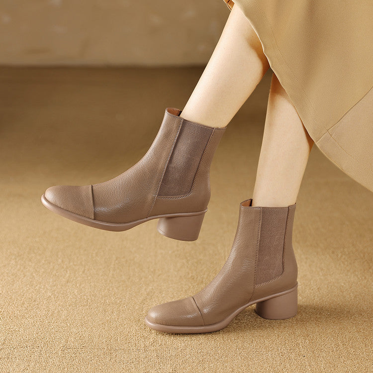 Soft sheepskin thick heel Chelsea boots women's boots 2025 autumn and winter new round head fashion splicing medium heel women's short boots