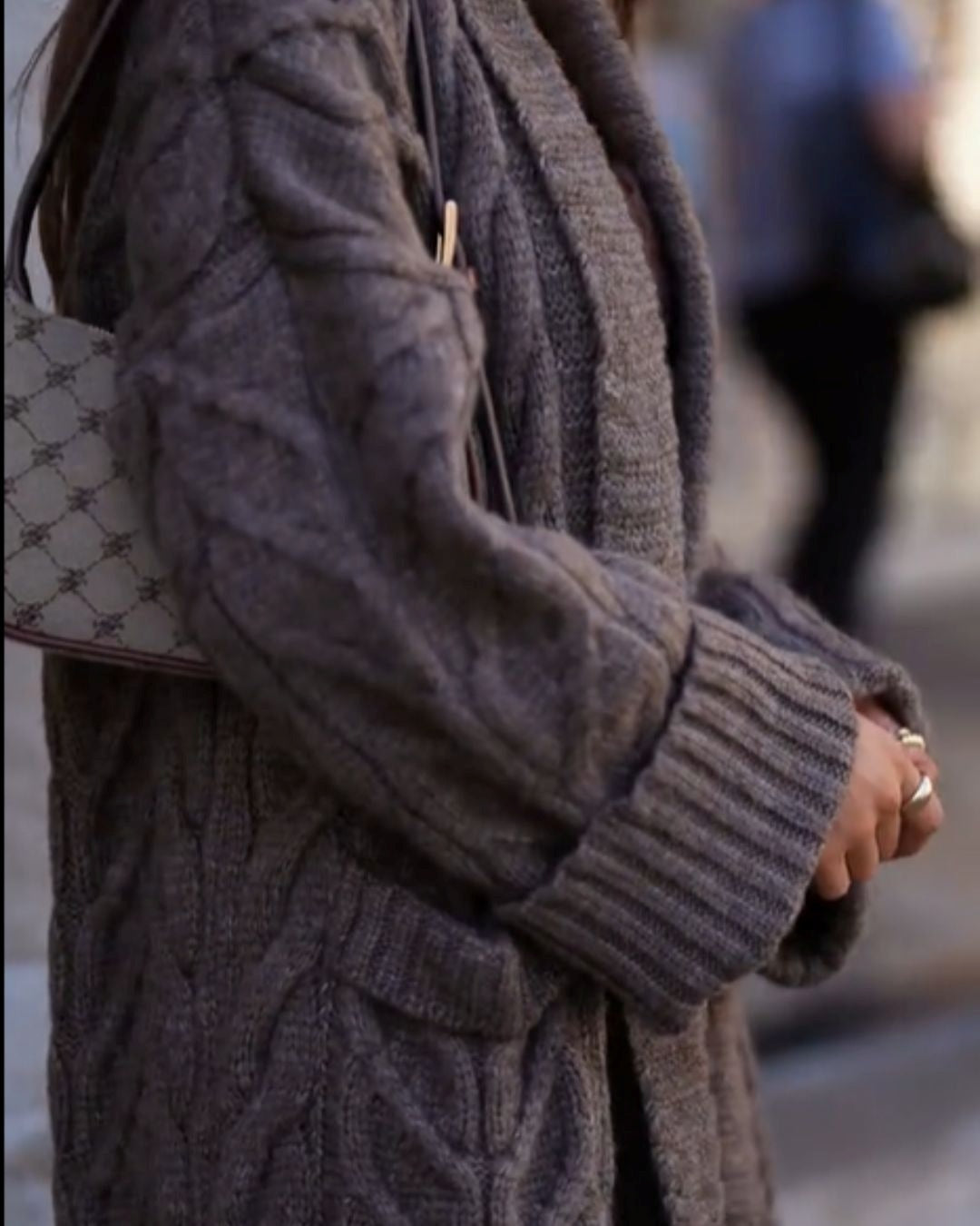This long cardigan coat features a chunky knit texture for a cozy and relaxed feel. The functional pockets add everyday convenience, while the loose silhouette makes it easy to layer over different outfits. Perfect for casual wear, commuting, or staying warm in cooler weather.