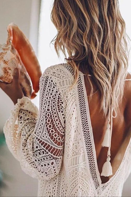 V-Neck Puff Sleeve Hollow Out Cover Up Dress